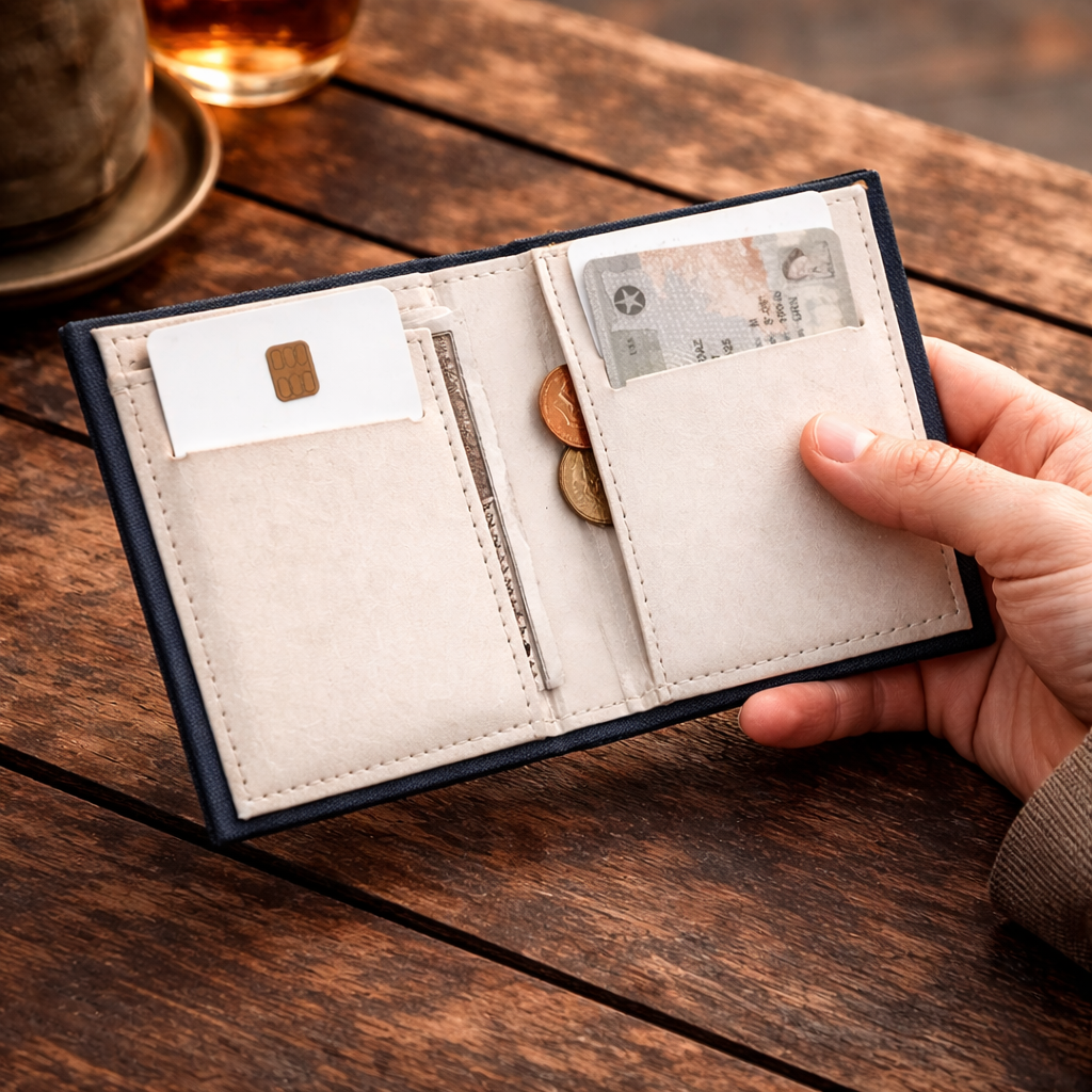 Peněženka, která vypadá jako kniha, přirozeně přitahuje pohledy.